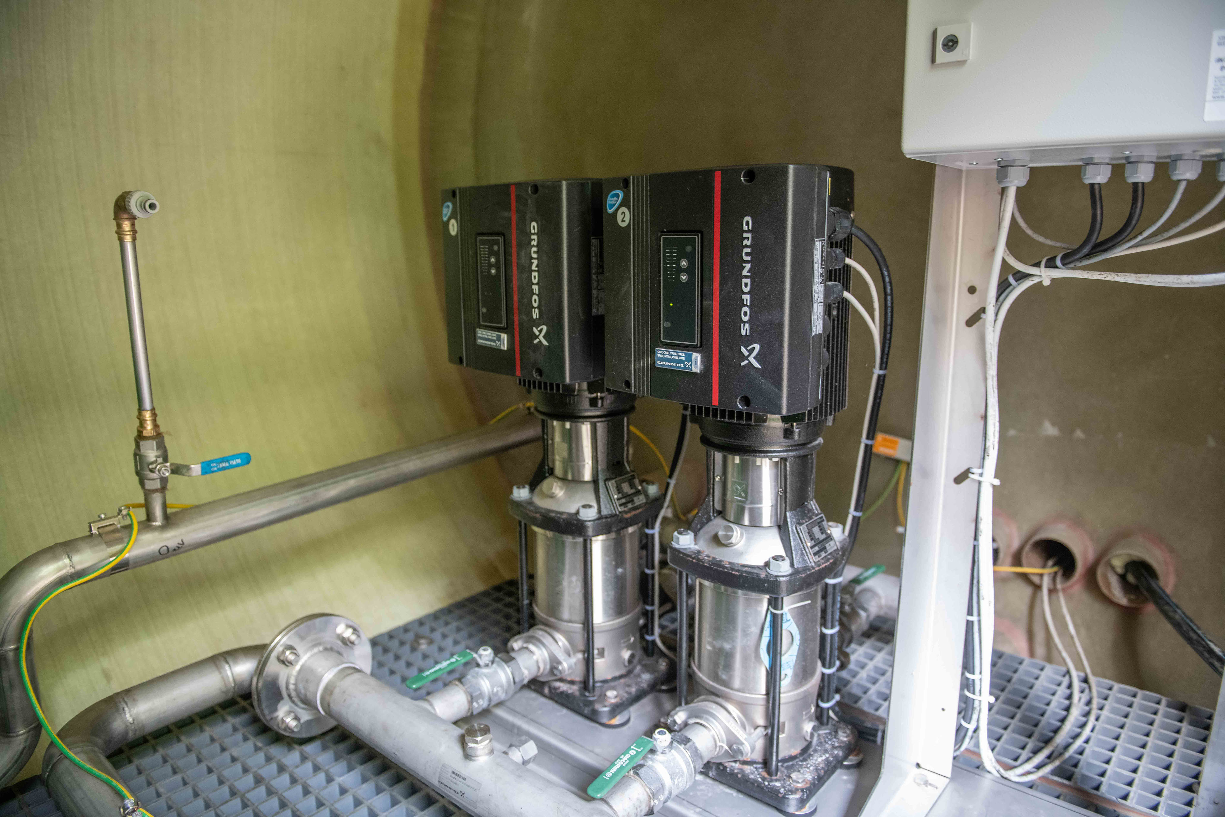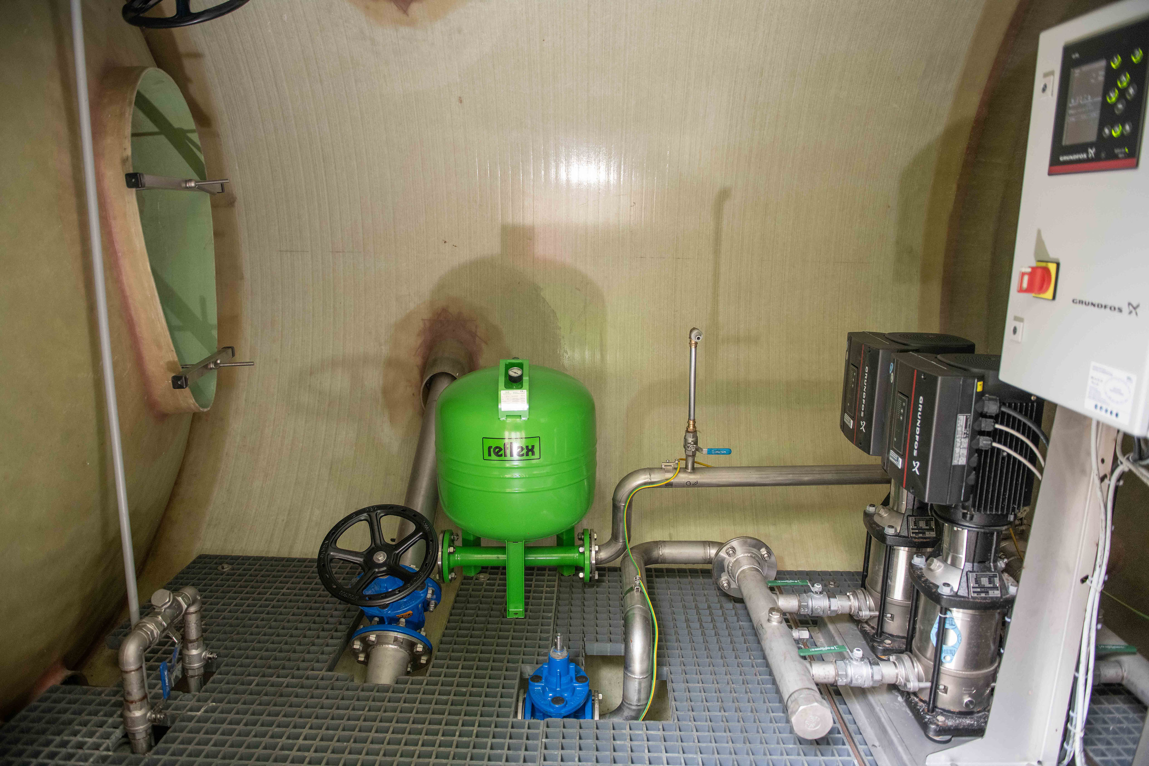 Als Wasserreservoir und zum Ausgleich der Druckverhältnisse dienen drei Hochbehälter mit einem Fassungsvermögen von zusammen ca. 460 Kubikmetern. In diesen befinden sich auch die notwendigen Armaturen und Messeinrichtungen.